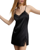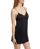 A new addition to our Entice collection, this mini chemise slip blends soft stretch satin with our signature eyelash lace trim for a romantic, ‘90s-inspired silhouette. The V-neckline and dipped V-back show just enough skin, while the sleek fabric hugs your body for a smooth fit. Finished with a lace-trimmed slit and shiny adjustable straps, it’s your go-to for evenings in or out.