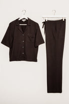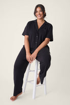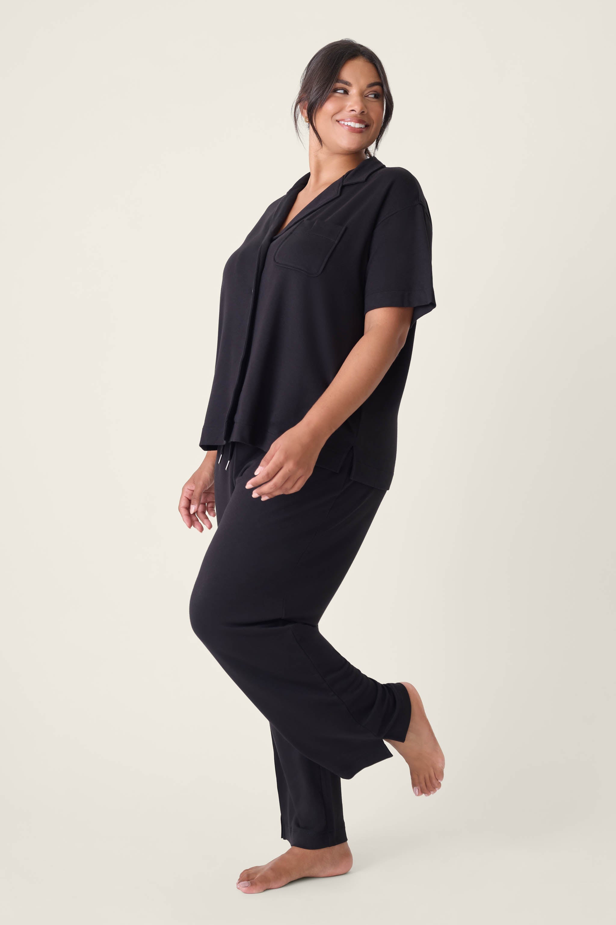 The ultimate pajama set is here. Get cozy with classic details including a button-front collared top with a slouchy fit and a modern pant with side pockets. Effortless, classy & comfy this set has it all.
