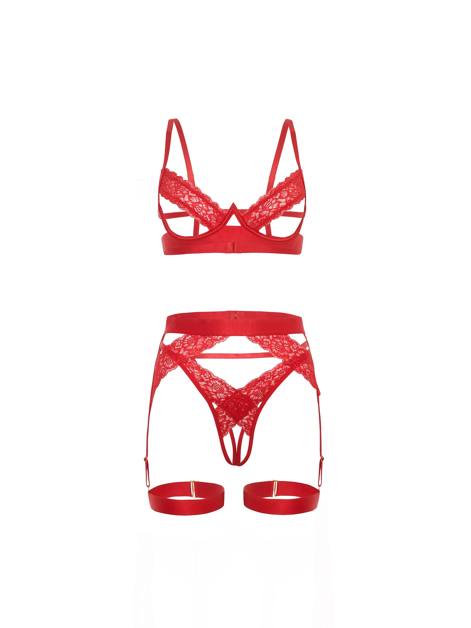 - Underwire Open Cup 3PC Set with Lace Trim