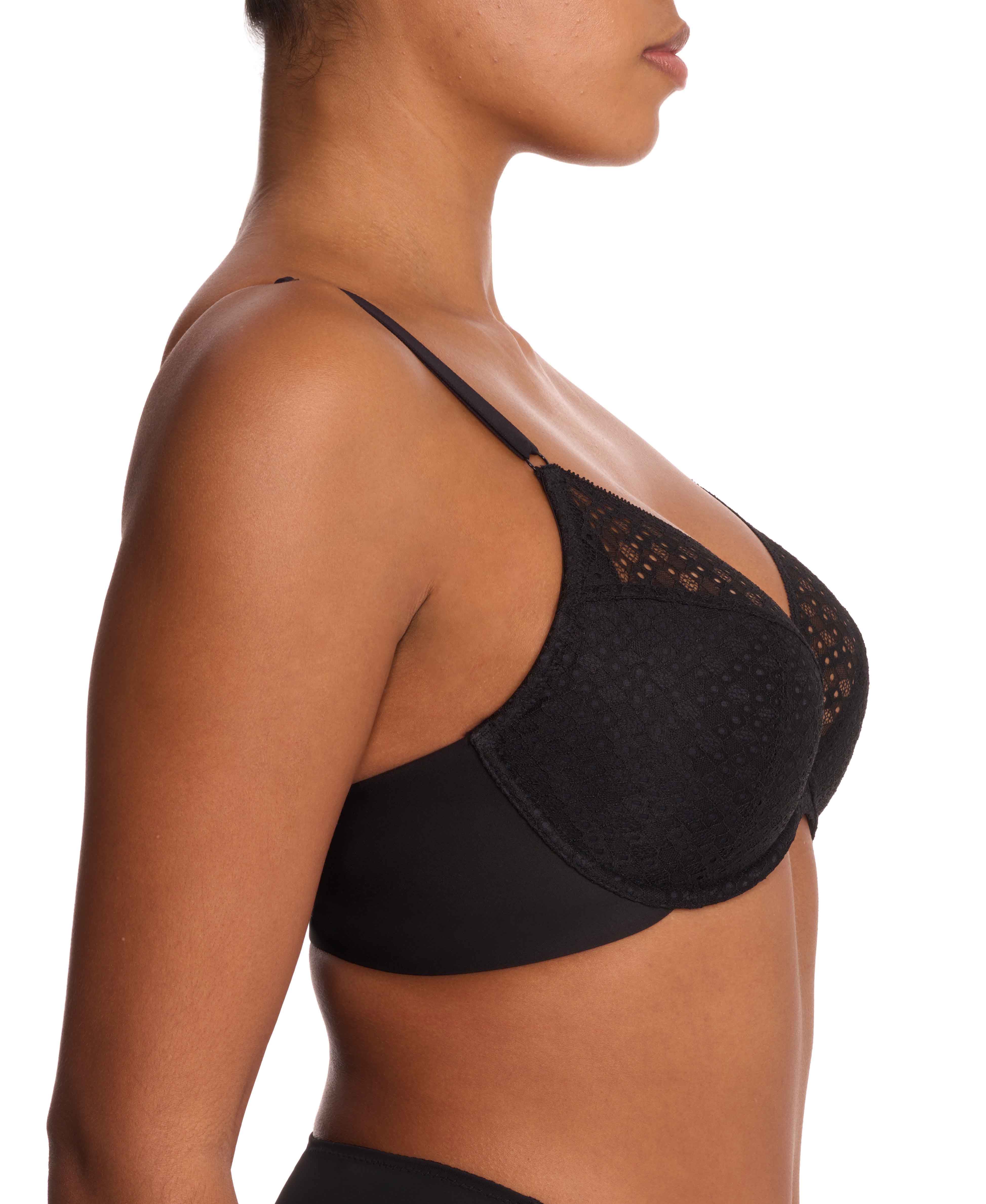 A smooth back underwire with signature Natori comfort. Experience complete harmony with the beauty of geo lace and the innovation of smoothing double-knit backs.