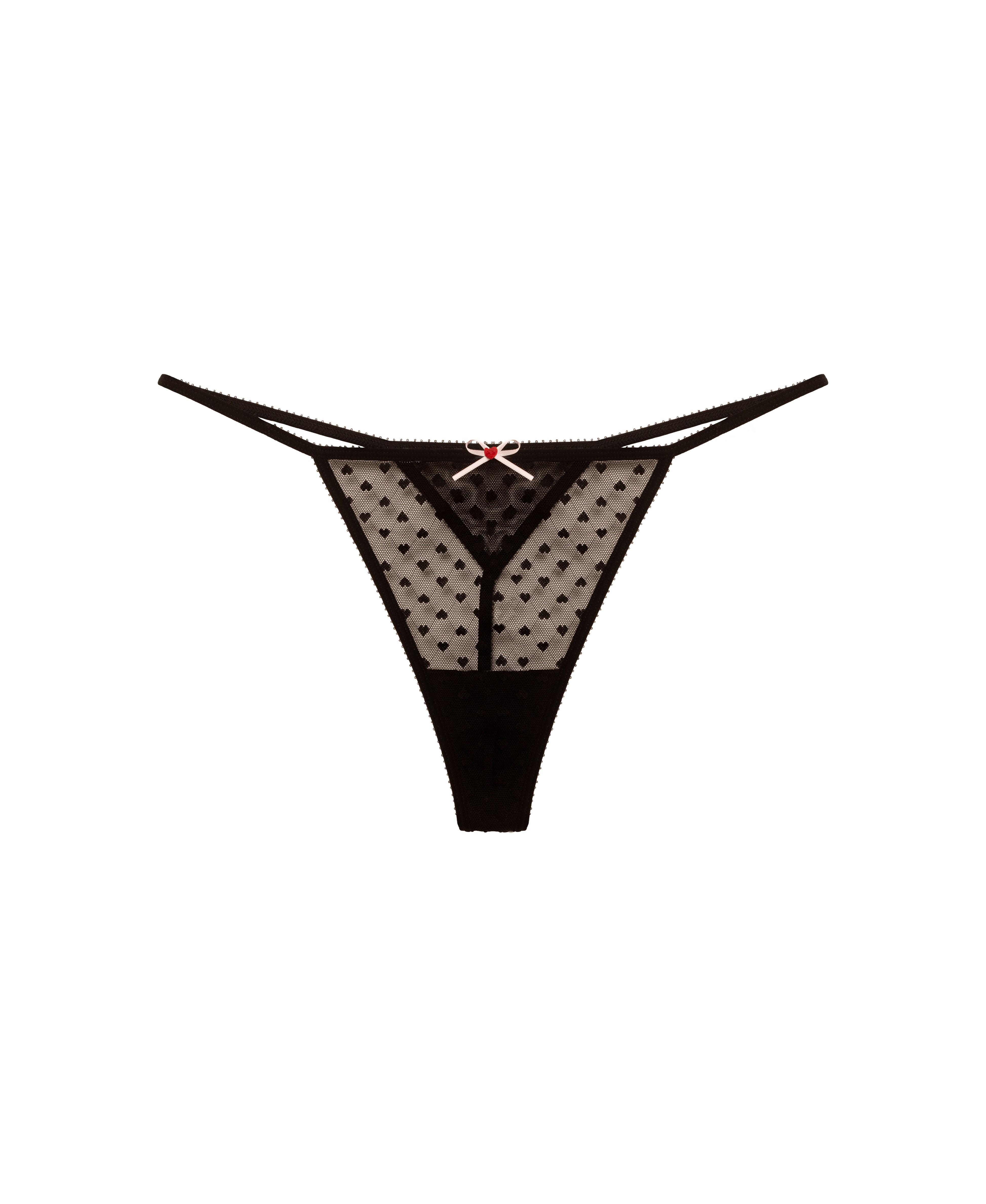 It’s sweet, it’s sexy—and it might just break a few hearts. The Heart Breaker G-String Thong is crafted from sheer stretch heart lace and finished with delicate picot trim for a flirty, ultra-minimal fit. A satin bow and felt heart at the front add a playful wink. For a full effect, pair it with the matching Heart Breaker Lace Underwire Bra or Sheer Cami.