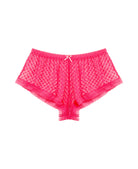 Heart eyes are guaranteed. These cheeky shorts are crafted from sheer stretch heart lace and finished with delicate heart-trimmed edges for a sweet-meets-sexy look. A satin bow and felt heart at the waistband add the perfect playful detail. Whether you're lounging or layering, the Heart Breaker Sheer Shorts bring charm to every moment. For the full effect, pair them with the matching Heart Breaker Sheer Cami or the Heart Breaker Underwire Bra.