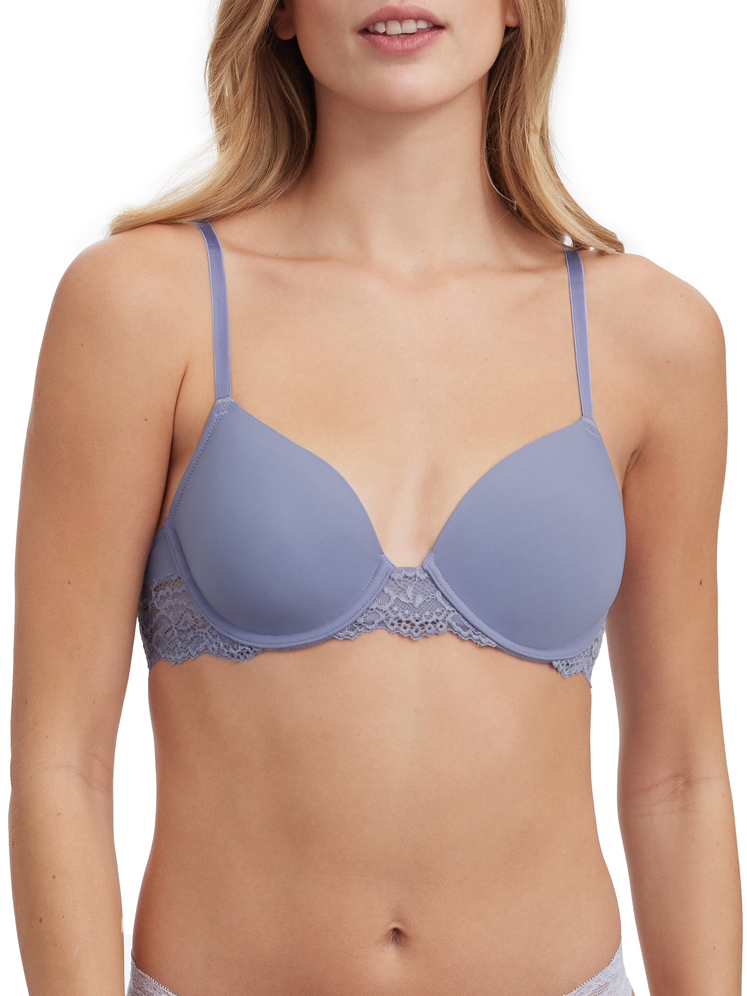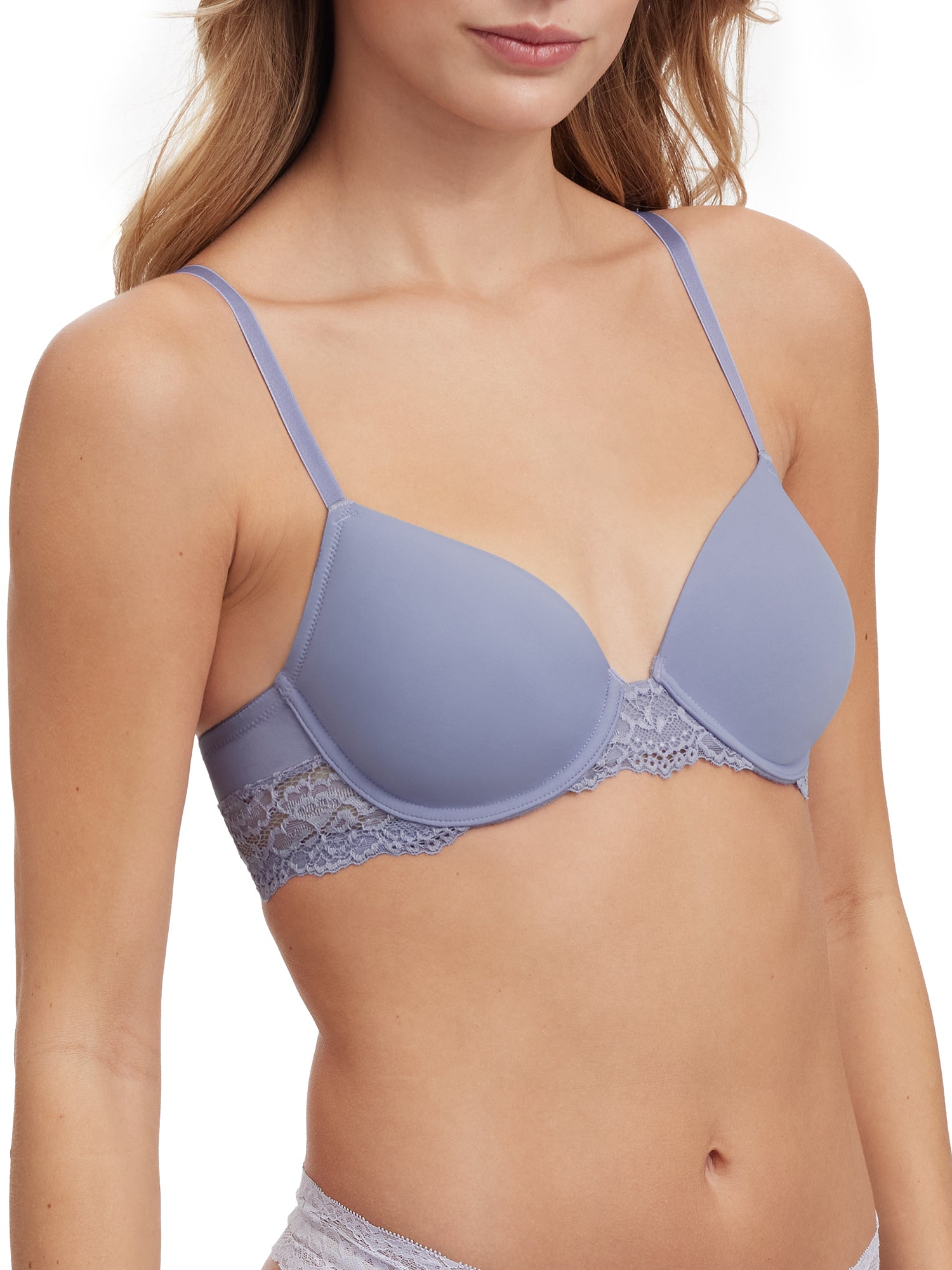 This t-shirt bra has convertible straps that can be worn multiple ways. Goddess lace trims the bottom band adds a beautiful detail to your everyday bra. Super soft nylon molded cups for added comfort and seamless look.